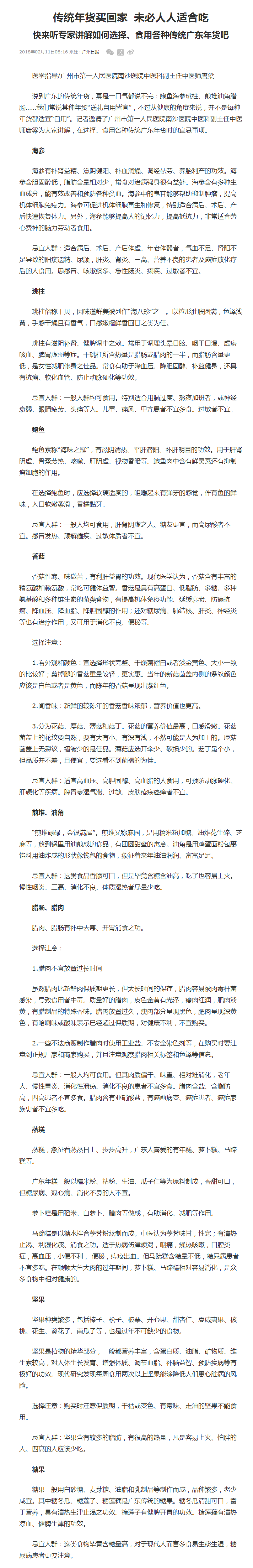 《广州日报》:传统年货买回家 未必人人适合吃 2018年2月11日A12版