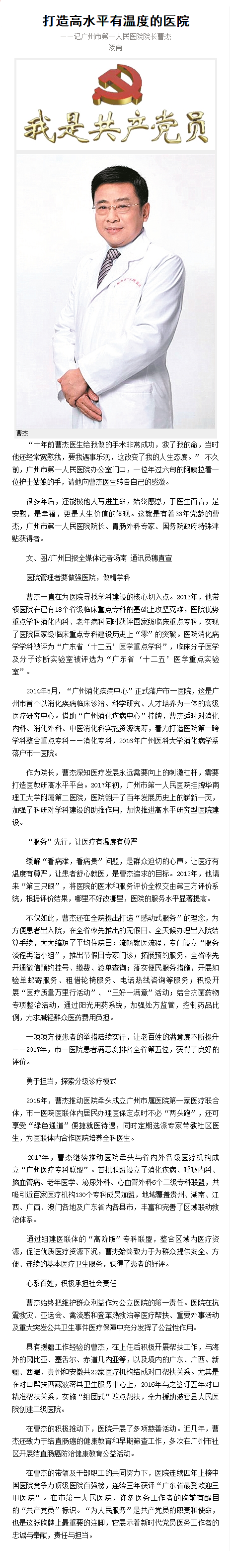 《广州日报》:打造高水平有温度的医院 2018年7月26日W3版