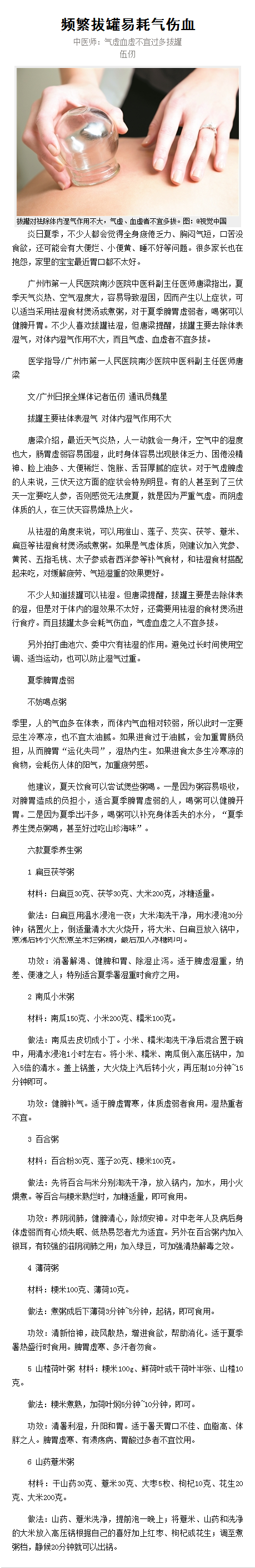 《广州日报》:频繁拔罐易耗气伤血 2018年8月13日A23版