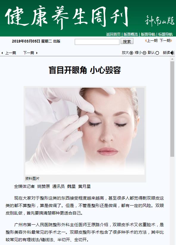 《健康养身周刊》盲目开眼角 小心毁容 2019年3月5日B8版