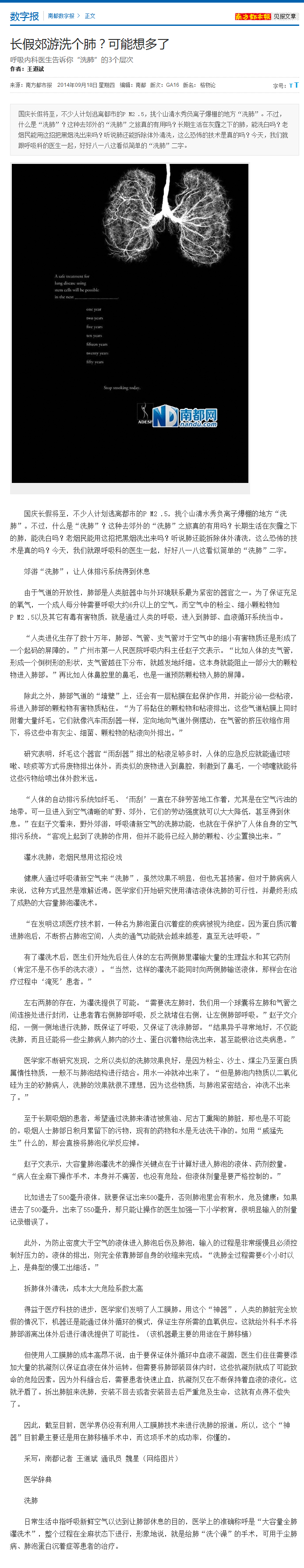 《南方都市报》:长假郊游洗个肺?可能想多了 2014年9月18日GA16版