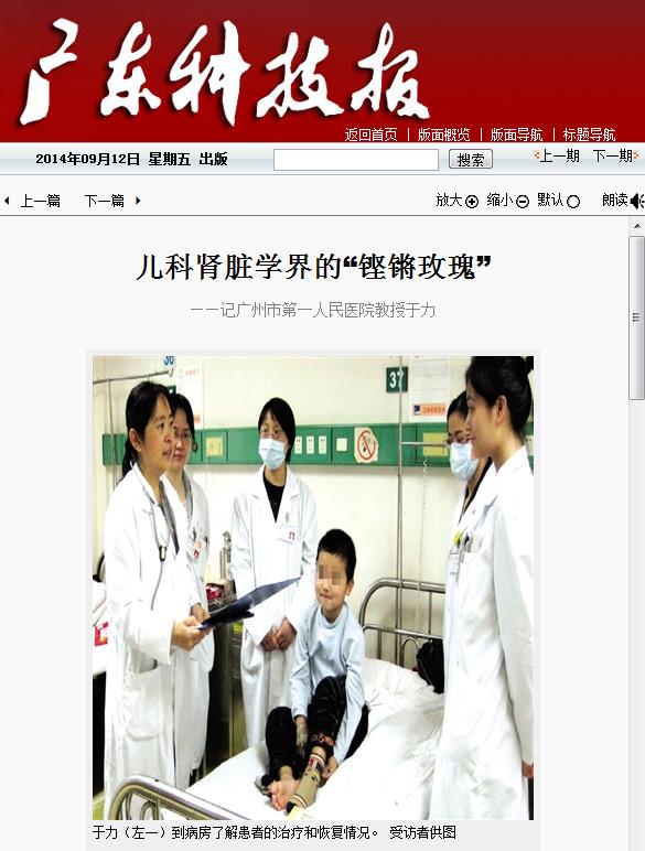 《广东科技报》:儿科肾脏学界的“铿锵玫瑰” 2014年9月12日A05版