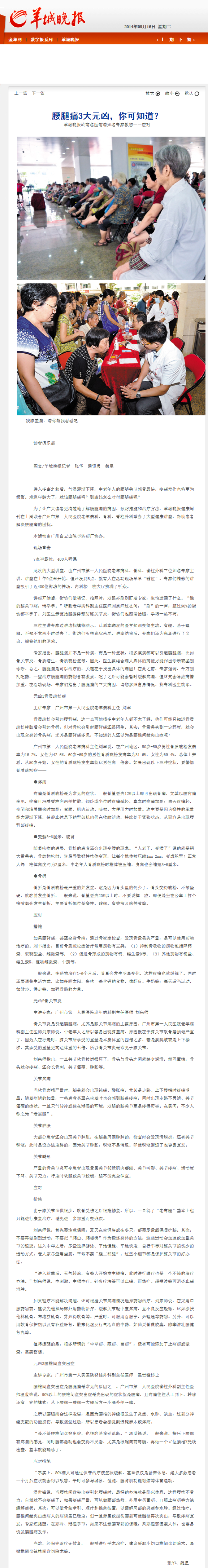 《羊城晚报》:腰腿痛3大元凶,你可知道?2014年9月16日B07版