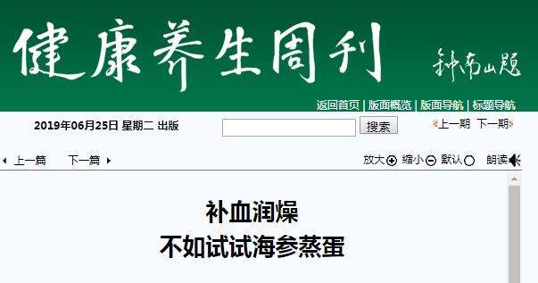 《健康养生周刊》:补血润燥 不如试试海参蒸蛋 2019年6月25日A8版