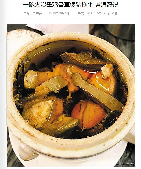 《羊城晚报》:一碗火炭母鸡骨草煲猪横脷 暑湿热退 2019年6月18日A14版