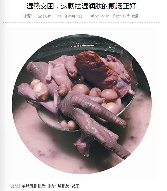 《羊城晚报》:湿热交困,这款祛湿润肤的靓汤正好 2019年5月21日A16版