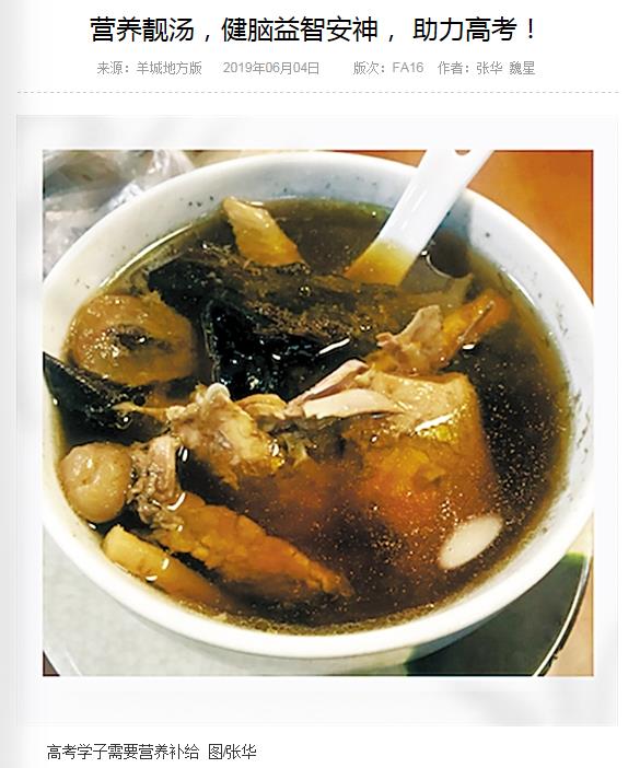 《羊城晚报》;营养靓汤,健脑益智安神, 助力高考! 20149年6月4日A16版