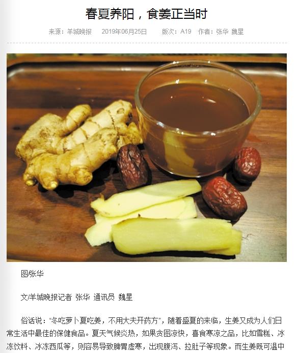 《羊城晚报》:春夏养阳,食姜正当时 2019年6月25日A19版