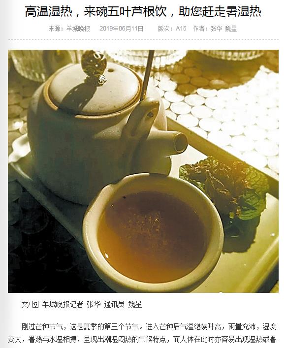 《羊城晚报》:高温湿热,来碗五叶芦根饮,助您赶走暑湿热 2019年6月11日A15版