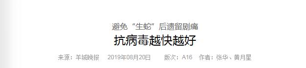 《羊城晚报》:避免“生蛇”后遗留剧痛 抗病毒越快越好 2019年8月20日A16版