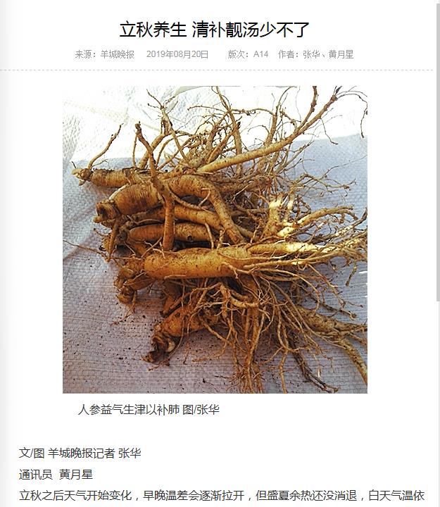 《羊城晚报》:立秋养生 清补靓汤少不了 2019年8月20日A14版