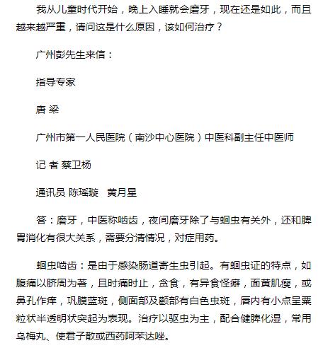 《老人报》:多年磨牙 不只蛔虫问题 2019年8月19日A11版