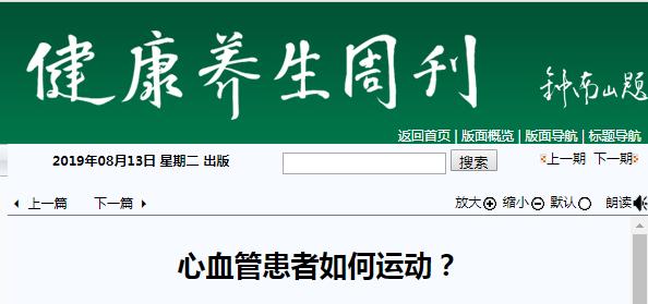 《健康养生周刊》:心血管患者如何运动? 2019年8月13日B4版