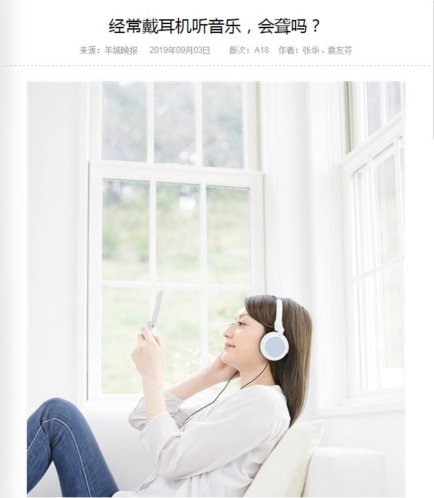 《羊城晚报》:经常戴耳机听音乐,会聋吗? 2019年9月3日A18版
