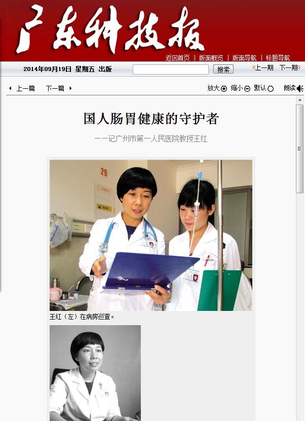 《广东科技报》:国人肠胃健康的守护者 2014年9月19日A05版