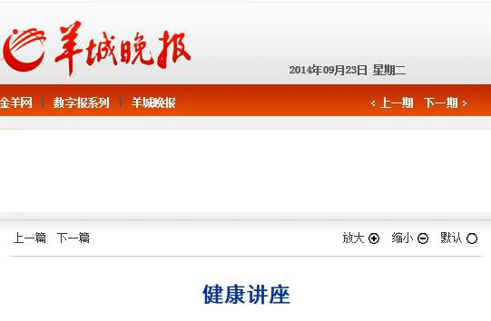 《羊城晚报》:健康讲座 2014年9月23日B09版