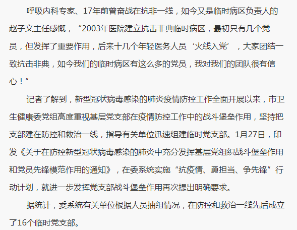 《信息时报》:市一医院:发热门诊留观病区组建临时党支部 2020年1月29日A8版