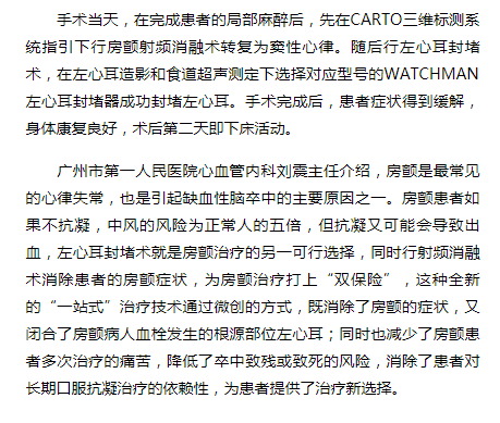 《广州日报》:心律失常 射频+左心耳封堵解难题 2020年1月17日A24版