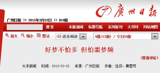 《广州日报》:好梦不怕多 但怕噩梦频 2015年3月22日B10版
