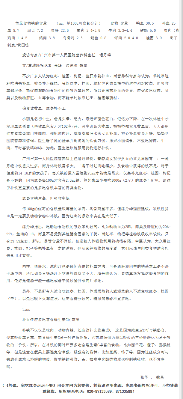 《羊城晚报》:补血,靠吃红枣远远不够 2015年9月19日B06版
