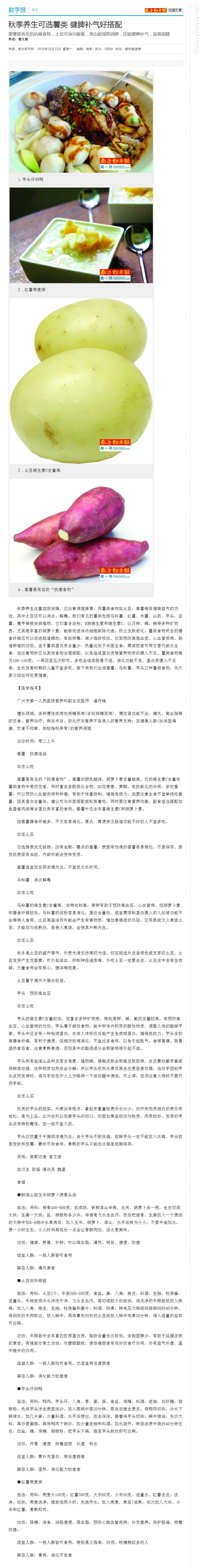 《南方都市报》:秋季养生可选薯类 健脾补气好搭配 2015年10月12日GS04版