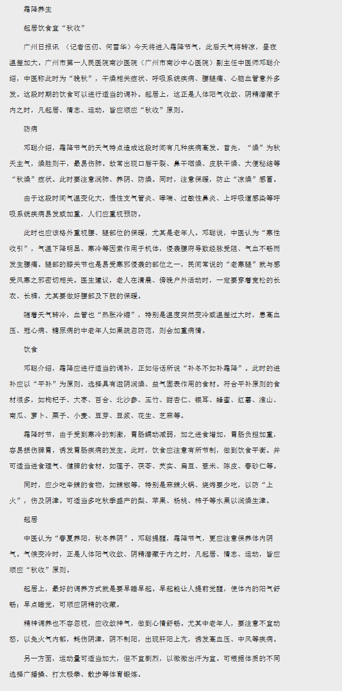 《广州日报》:秋凉当防“寒腿” 2015年10月24日A13版
