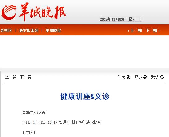 《羊城晚报》:健康讲座和义诊 2015年11月3日B05版