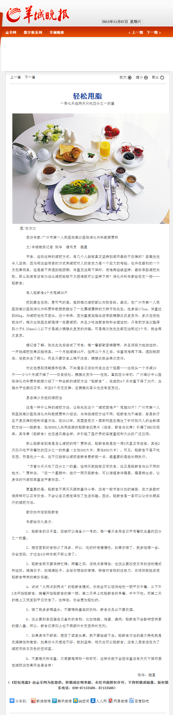 《羊城晚报》:轻松甩脂 2015年11月7日B08版