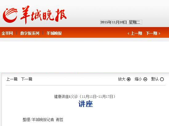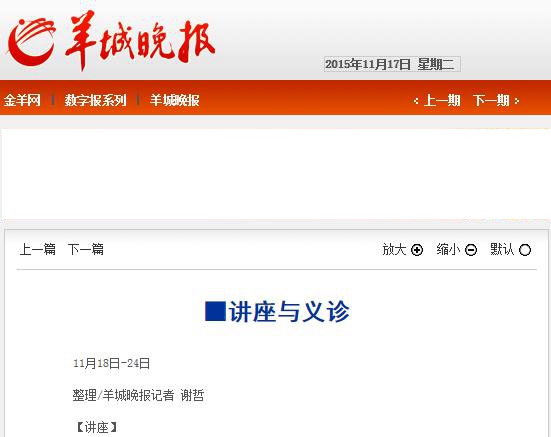 《羊城晚报》:讲座与义诊 2015年11月17日B02版