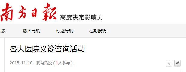 《南方日报》:各大医院义诊咨询活动 2015年11月10日B04版