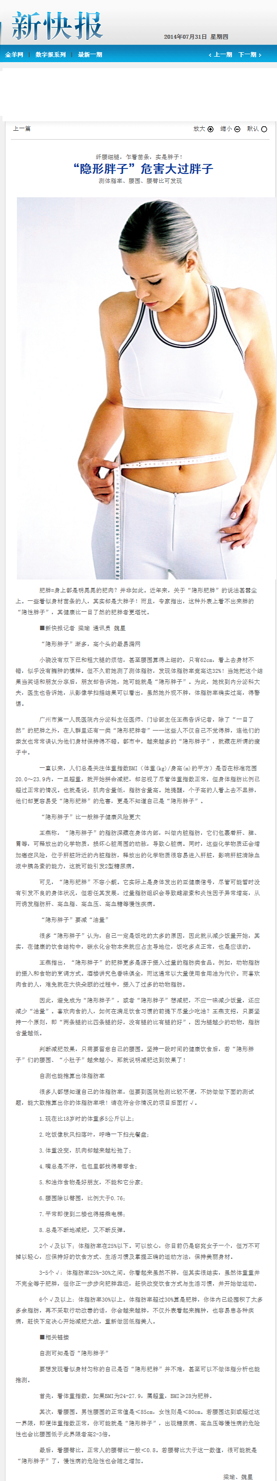 《新快报》:“隐形胖子”危害大过胖子 2014年7月31日D06版