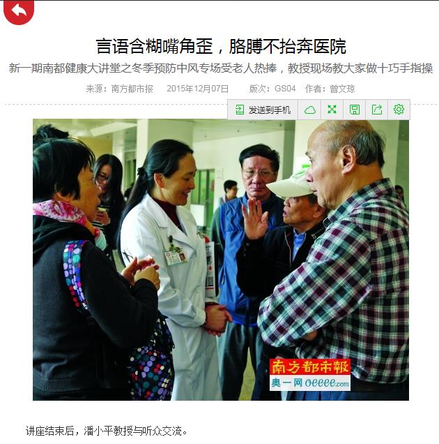 《南方都市报》:言语含糊嘴角歪 胳膊不抬奔医院 2015年12月7日GS04版