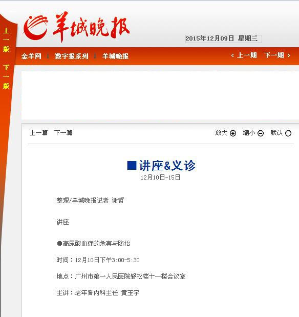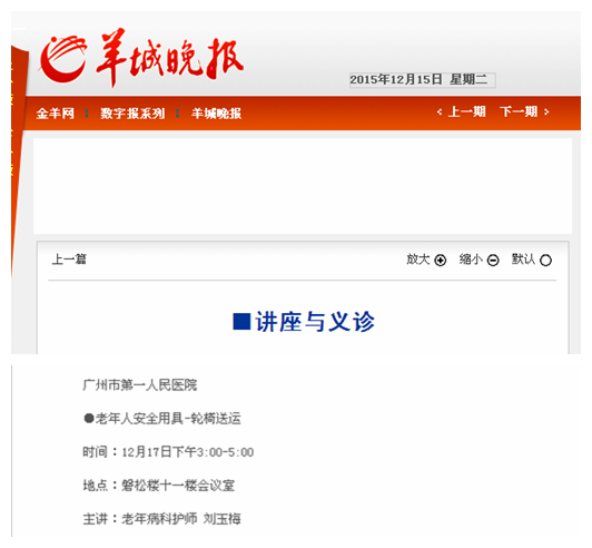 《羊城晚报》:讲座与义诊 2015年12月15日 B05版