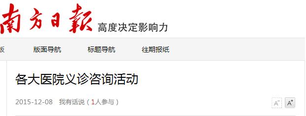 《南方日报》:各大医院义诊咨询活动 2015年12月8日B04版
