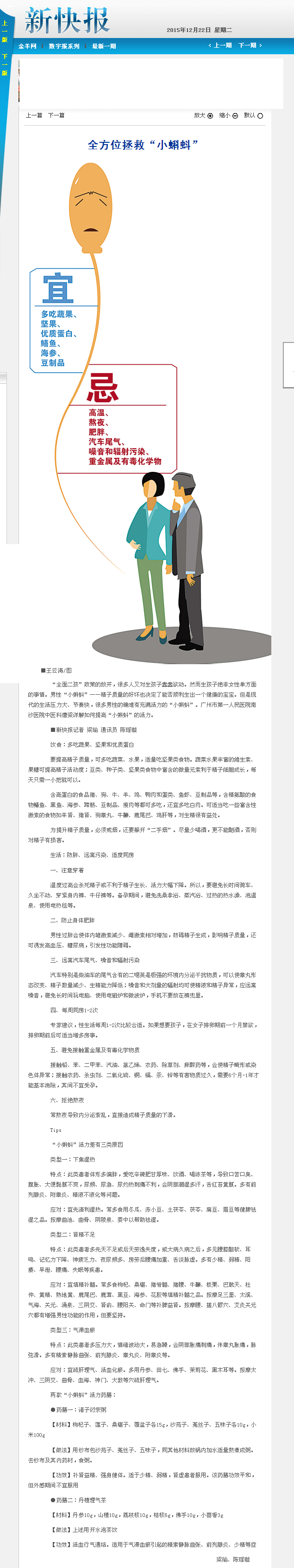 《新快报》:全方位拯救“小蝌蚪” 2015年12月22日 B6版