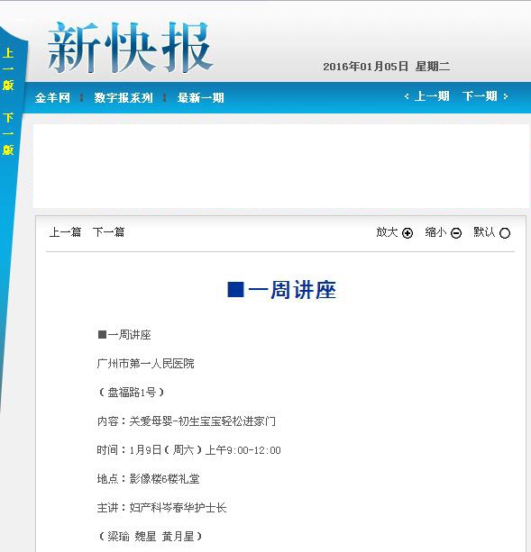 《新快报》:一周讲座 2016年1月5日 B06版