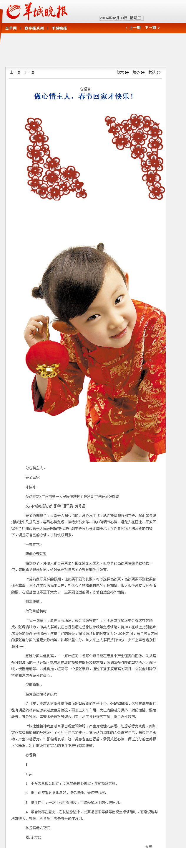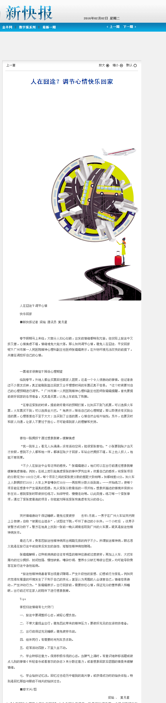 《新快报》:人在囧途?调节心情快乐回家 2016年2月2日 B1版
