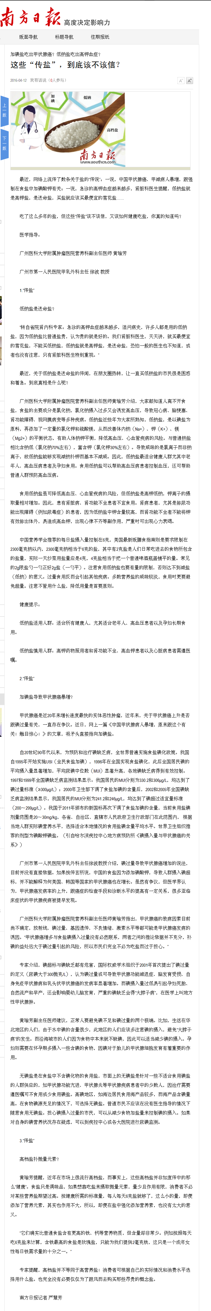 《南方日报》:这些“传盐”,到底该不该信? 2016年4月12日B01版