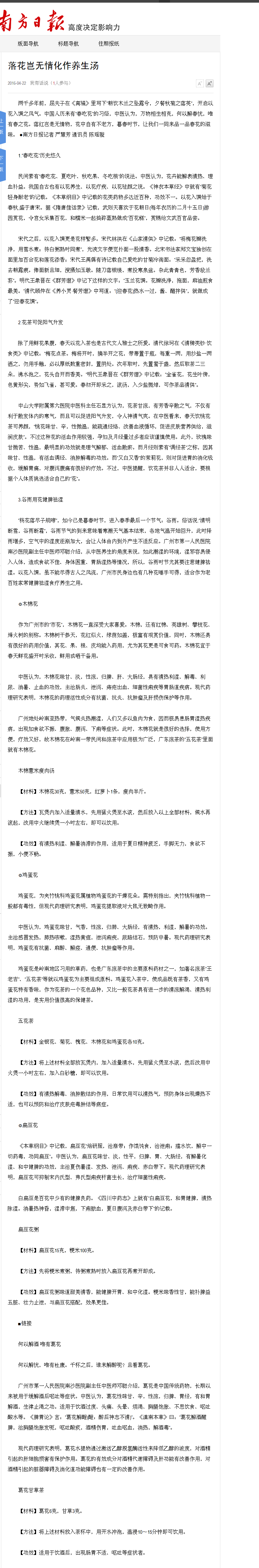 《南方日报》:落花岂无情化作养生汤 2016年4月22日A25版