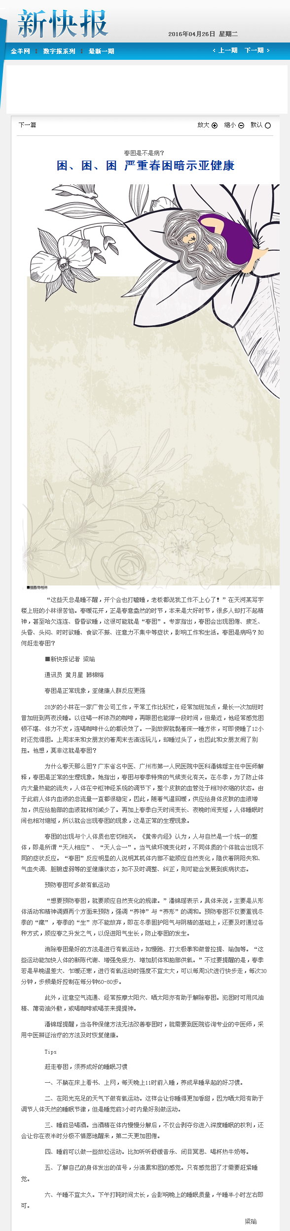 《新快报》:困、困、困 严重春困暗示亚健康 2016年4月26日B1版