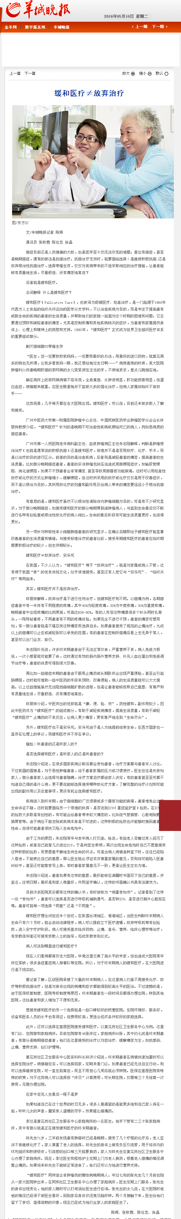 《羊城晚报》:缓和医疗≠放弃治疗 2016年5月10日B05版