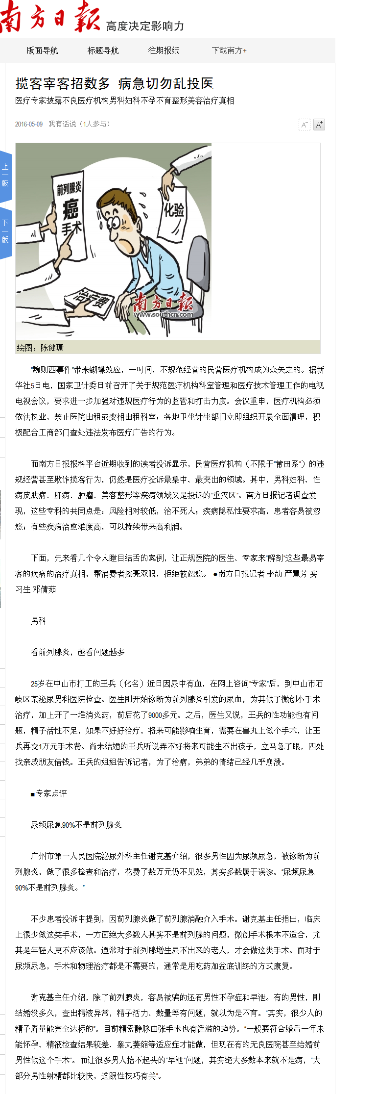 《南方日报》:揽客宰客招数多 病急切勿乱投医 2016年5月9日A04版