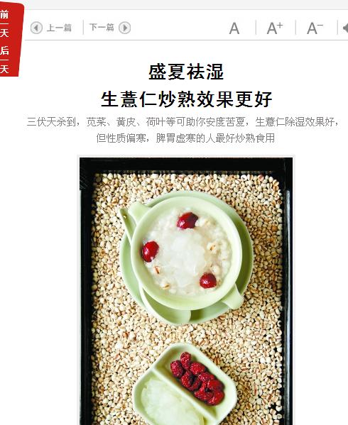 《广州日报》:盛夏祛湿 生薏仁炒熟效果更好 2016年7月3日B7版