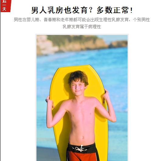 《广州日报》:男人乳房也发育?多数正常! 2016年6月26日B8版