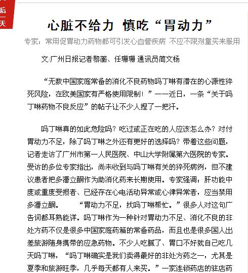 《广州日报》:心脏不给力 慎吃“胃动力” 2016年8月16日A4版