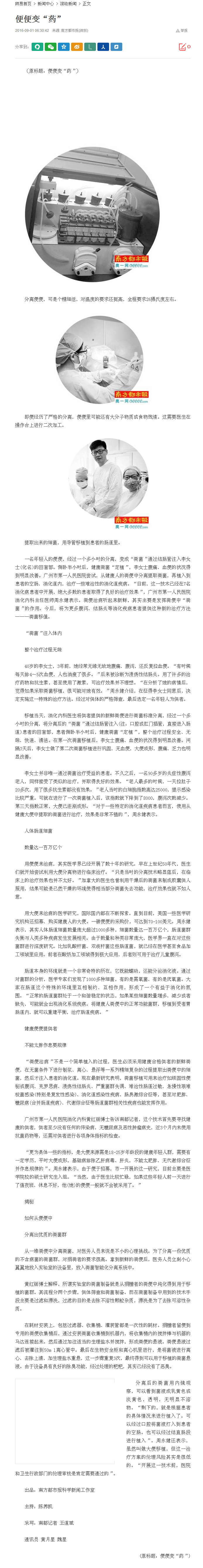 《南方都市报》:便便变“药” 2016年9月1日A18版