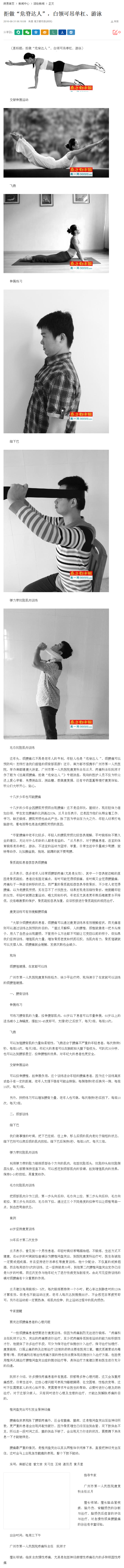 《南方都市报》:拒做“危脊达人”,白领可吊单杠、游泳 2016年8月31日GS03版