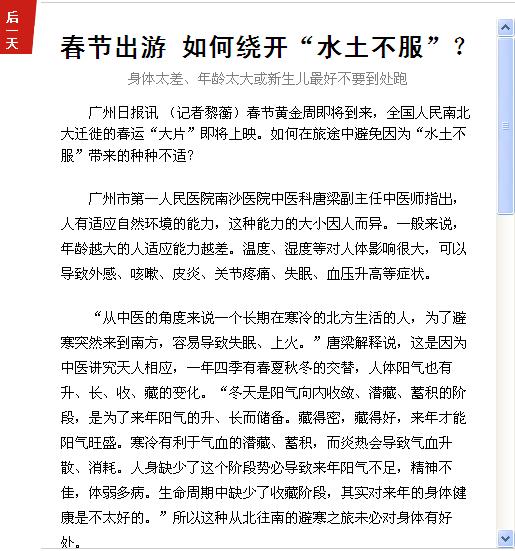 《广州日报》:春节出游 如何绕开“水土不服”? 2017年1月5日B4版