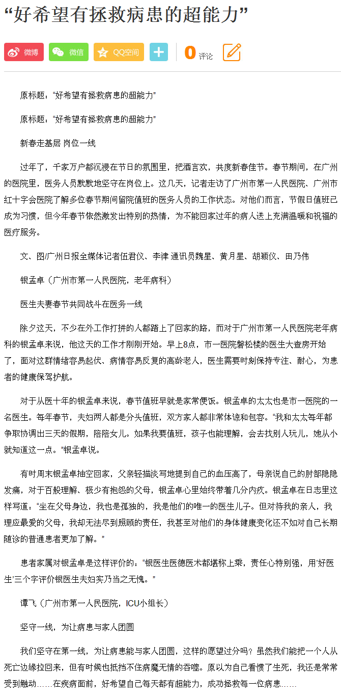 《广州日报》:“好希望有拯救病患的超能力” 2017年2月3日A2版