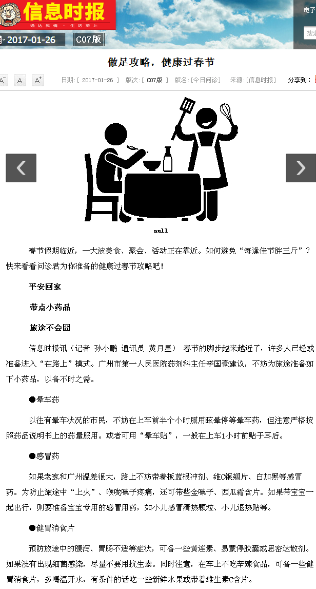 《信息时报》:做足攻略,健康过春节 2017年1月26日C07版